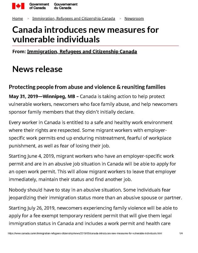 加拿大境内未取得移民身份,其临时身份是依赖于其配偶而获取的,如果遭受家庭暴力,可以申请临时居留许可,包括申请工签以及享受医疗待遇,移民部不收取任何费用。