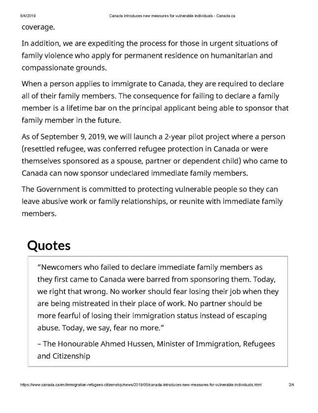 举例:当年 20 岁,作为未成年人被父母担保取得移民身份,申请移民的时候声称没有同居女友没有孩子,现时的法律不允许担保隐瞒的同居女友和孩子。2019/9/9 开始就可以担保他们了!!!