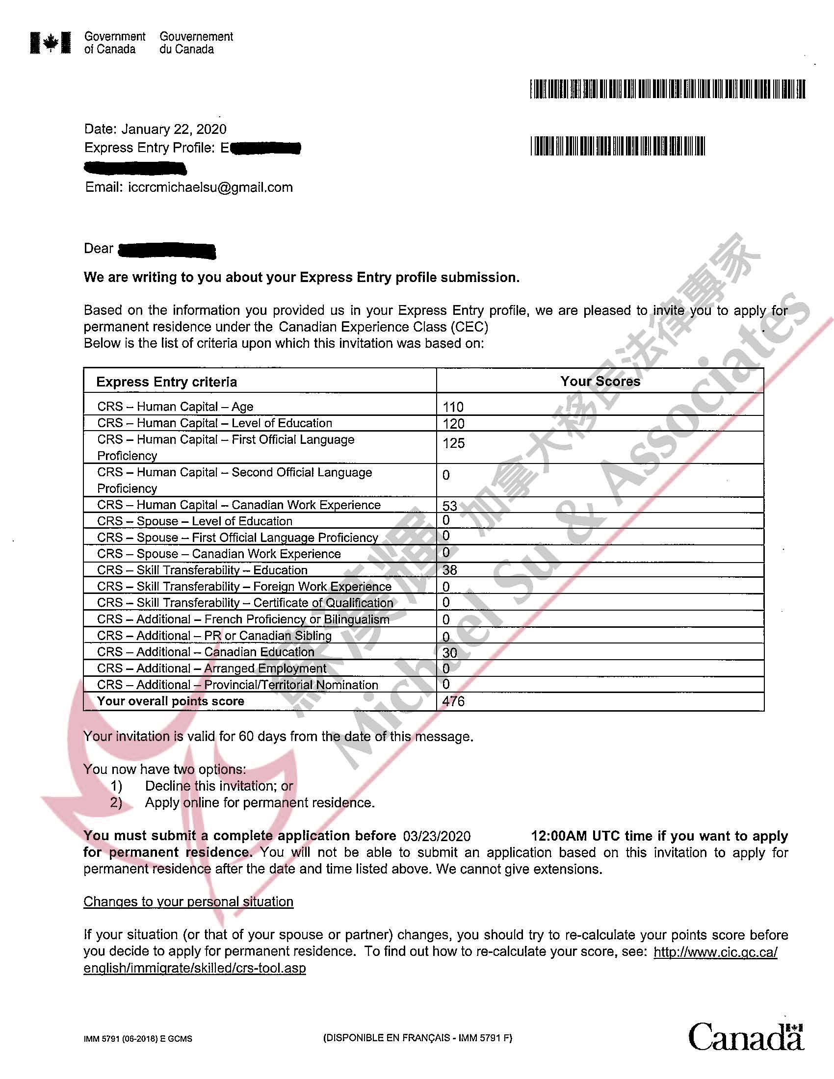 1) 476:本科毕业,两年加拿大工作经验