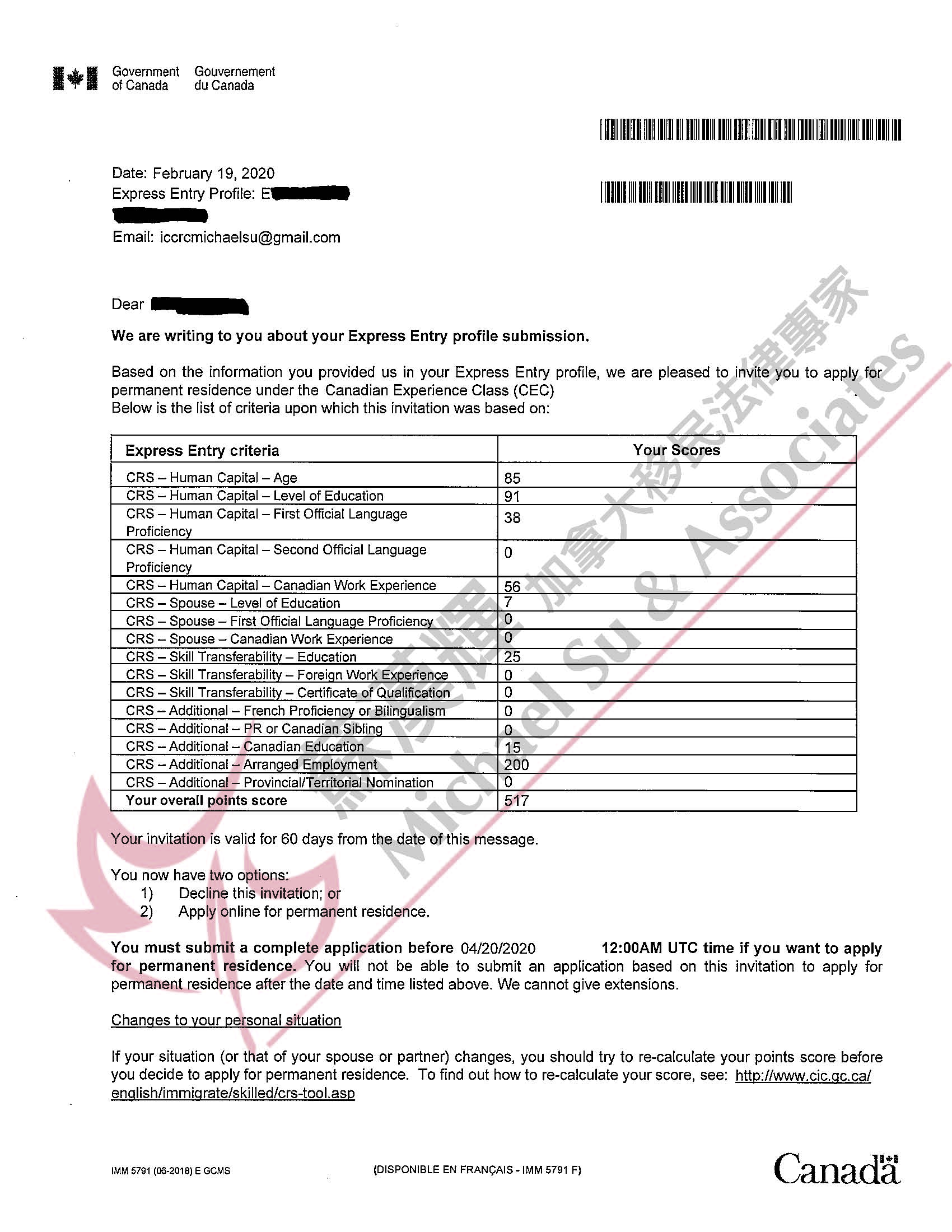 1. 其它不重要了,LMIA 加 200 分,得到 517 分