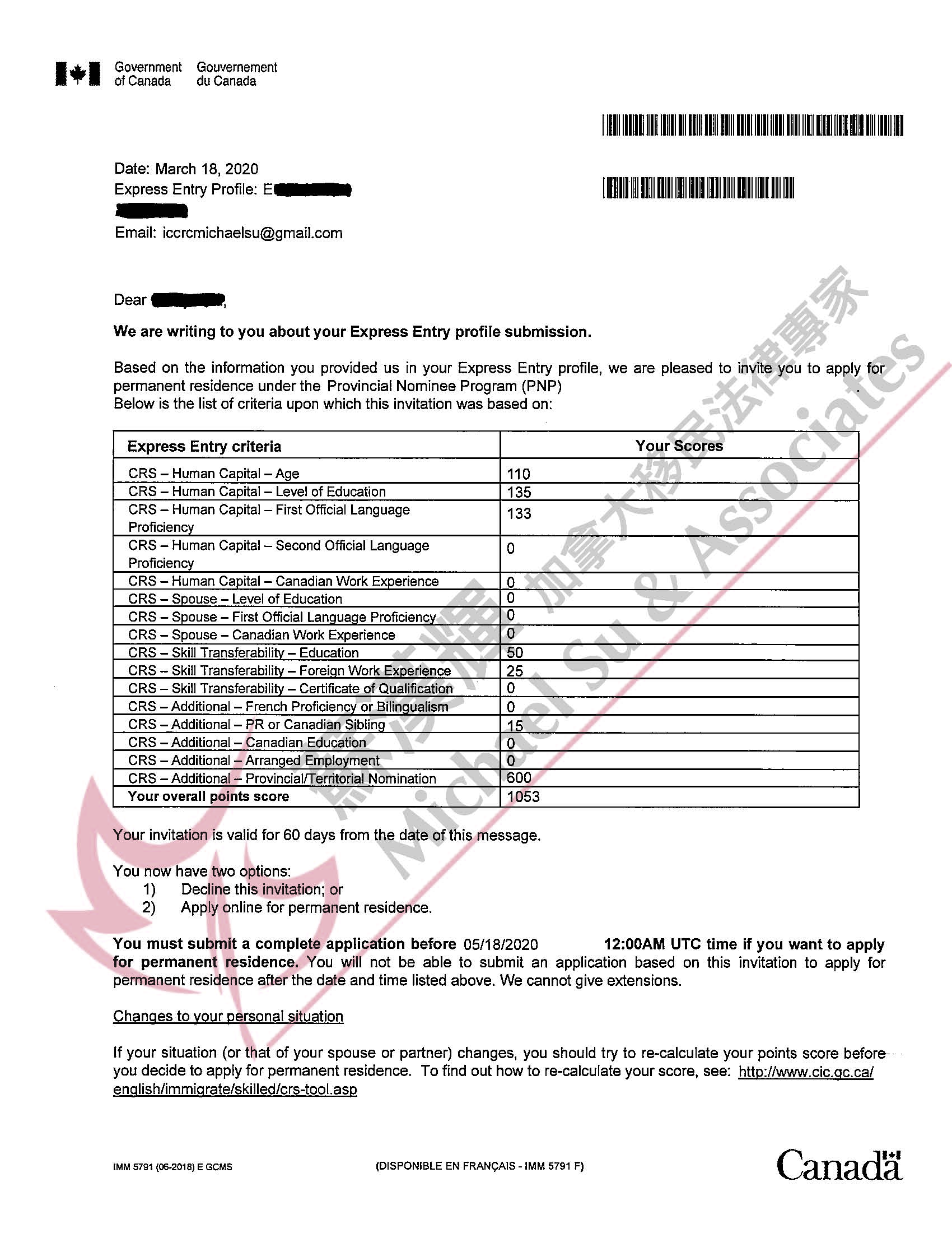 1. 安省 Human Capital 加 600 分,得到 1053 分