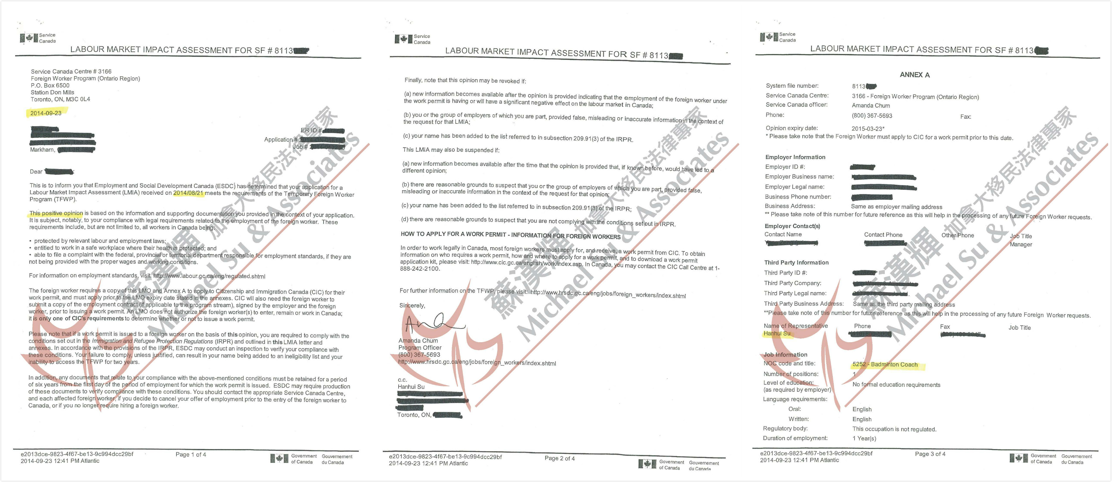 2014 年 9 月本人代理的第一个 LMIA, 供奉为古董级别了: