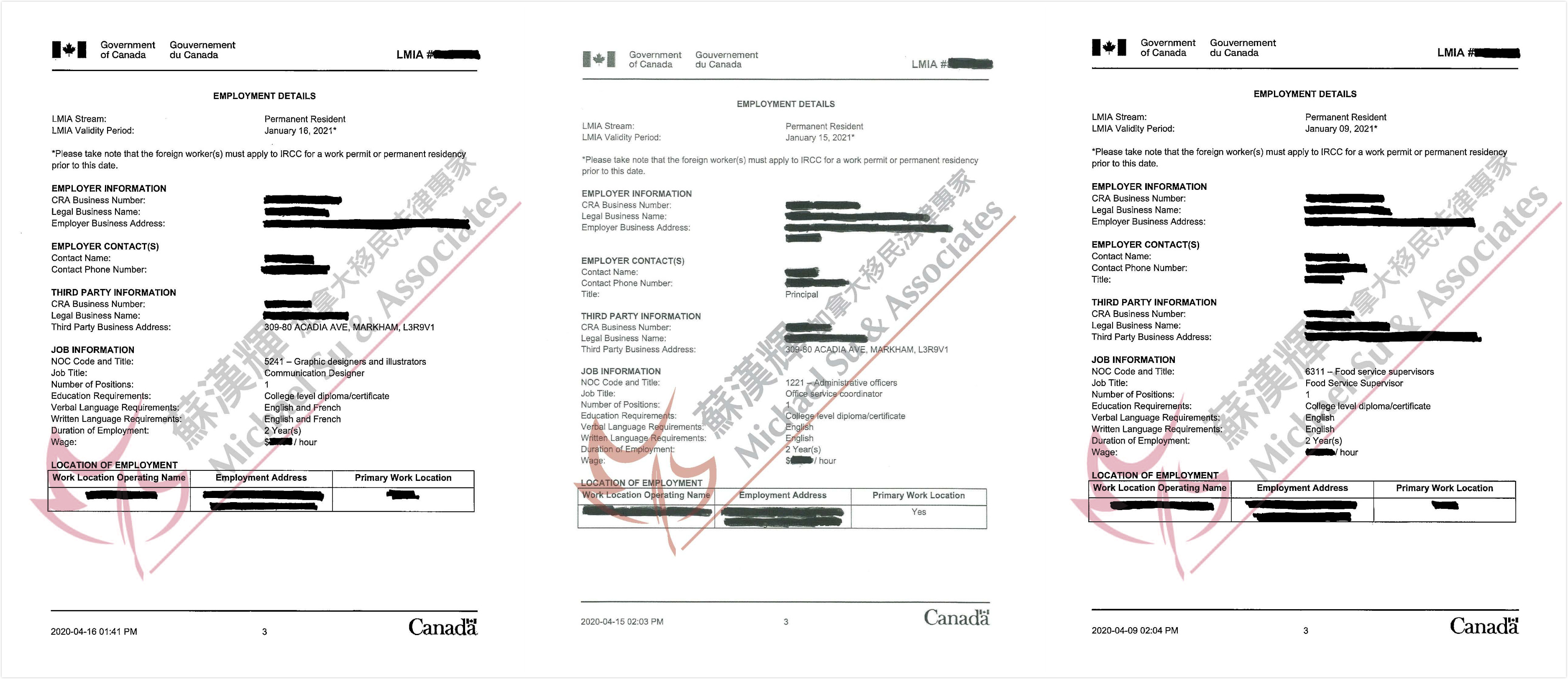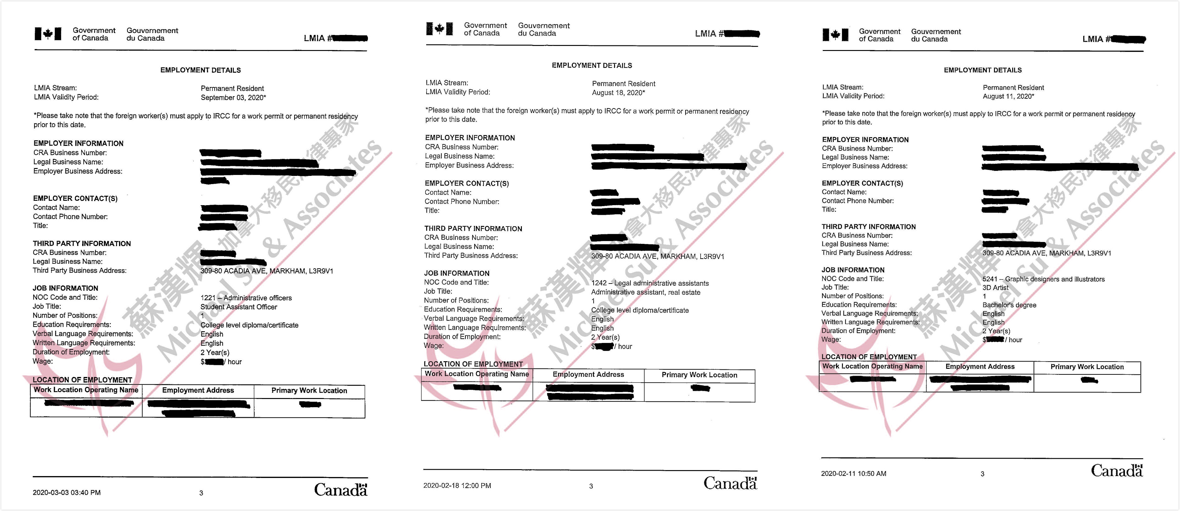 以及随收拈来的 2020 年的几个 LMIA,供大家参考: