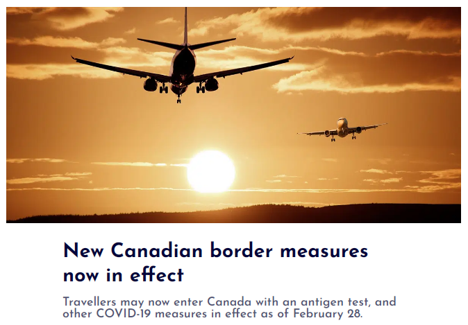 从2月28日凌晨12:01开始,加拿大允许旅客在入境前进行新冠检测。所有5岁及以上前往加拿大的游客在入境前仍需进行COVID-19检测。新措施允许入境旅客在预定航班或抵边境前一天提供新冠检测结果。 除了取消PCR检测外,未接种疫苗的儿童将不再需要隔离14天,所有机场的国际航班也将恢复。