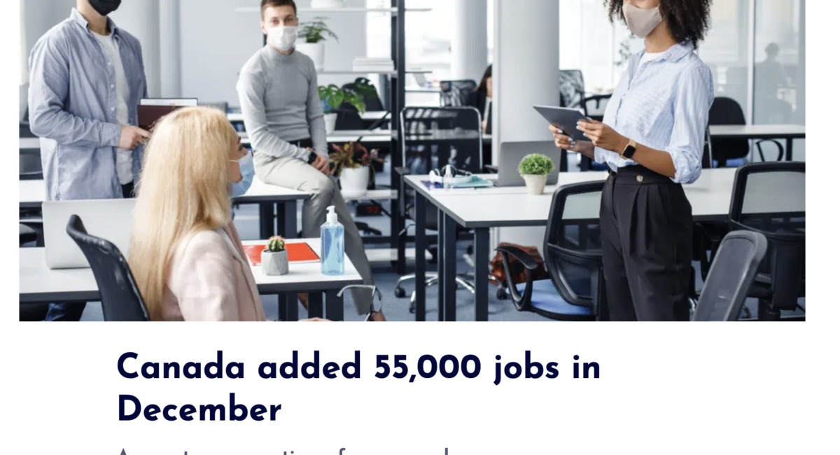 加拿大在失业率几乎没有变化的情况下,2021年12月新增了55,000 个工作岗位!